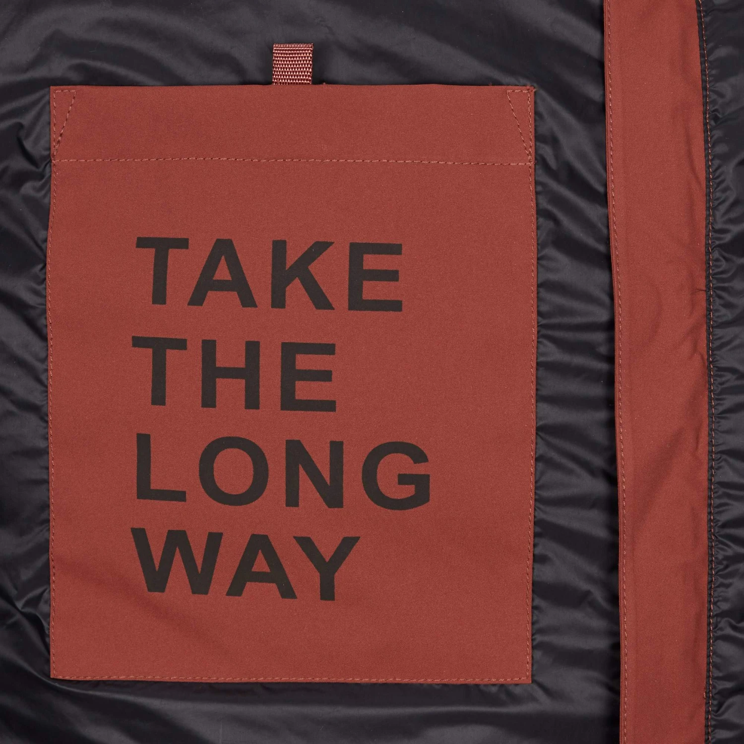 Sowohl das Außenmaterial als auch das Innenmaterial und die Wattierung bestehen komplett aus recyceltem Material. So werden wertvolle Ressourcen geschont. Außerdem ist die wasserabweisende Ausrüstung frei von umweltschädlichem PFC.