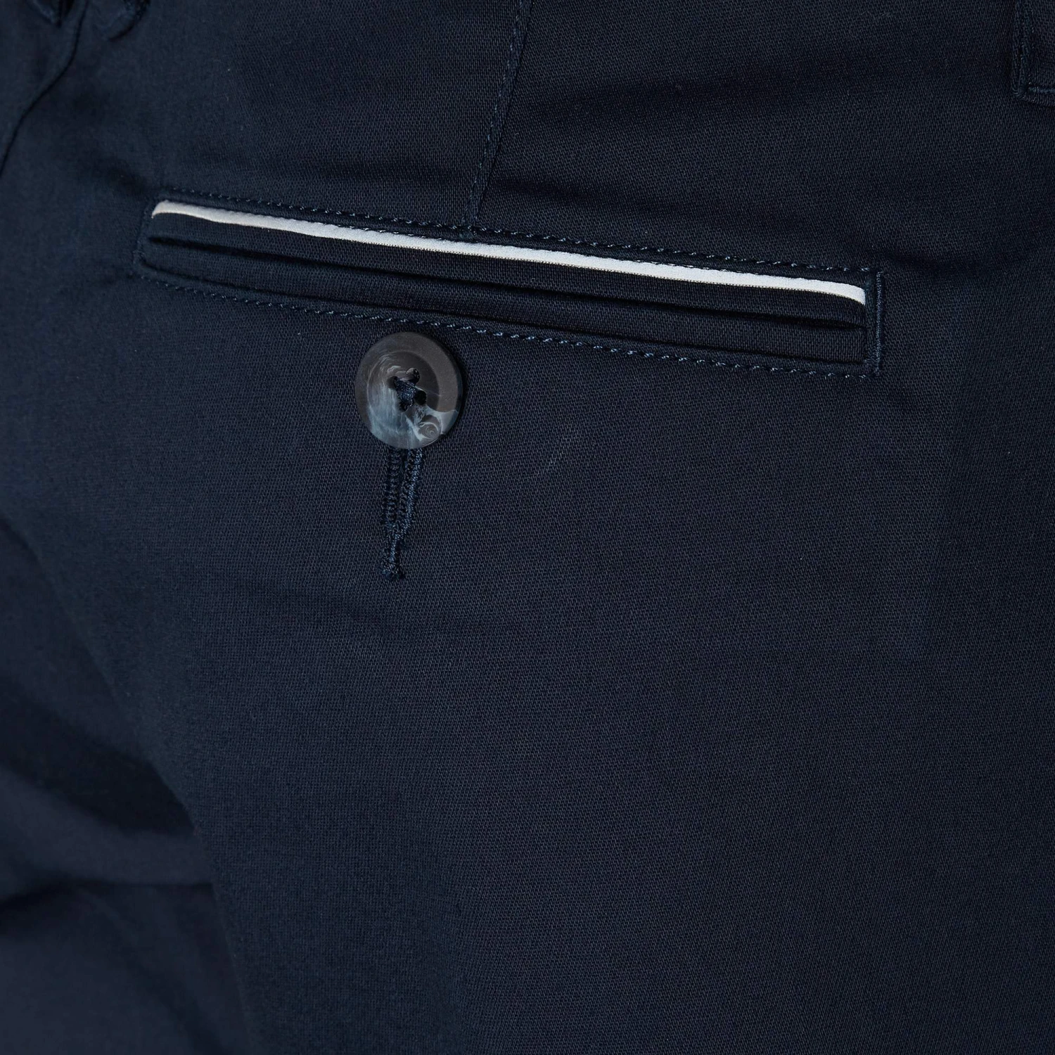 - 2 Gesäßtaschen mit Knopf, rechts mit reflektierender Paspel